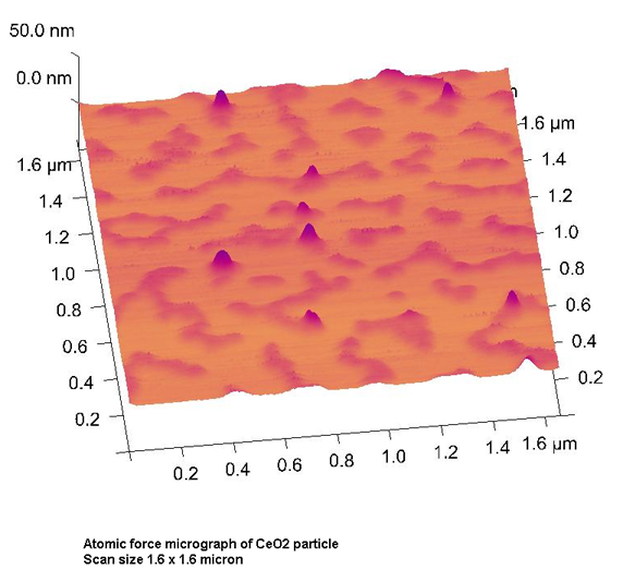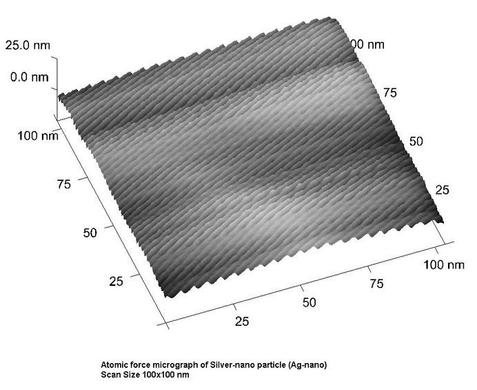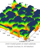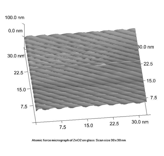 5 صورة مجهرية توضح المظهر السطحي لحبيبات أوكسيد الزنك على شريحة فولاذية (مساحة السطح الذي تم فحصه 2×2 مايكرون)