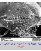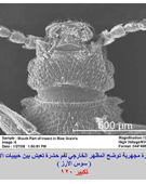 صورة مجهرية توضح المظهر الخارجي لفم حشرة تعيش بين حبيبات الأرز ( سوس الأرز ) |