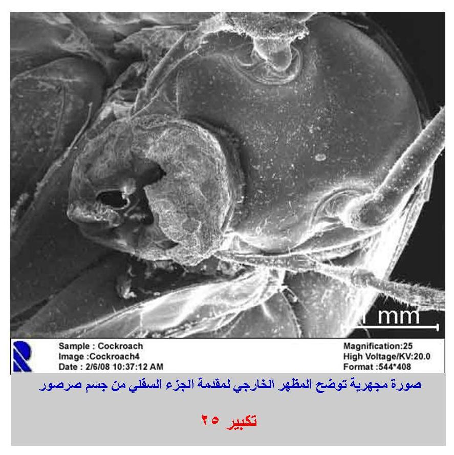 صورة مجهرية توضح المظهر الخارجي لمقدمة الجزء السفلي من جسم صرصور |