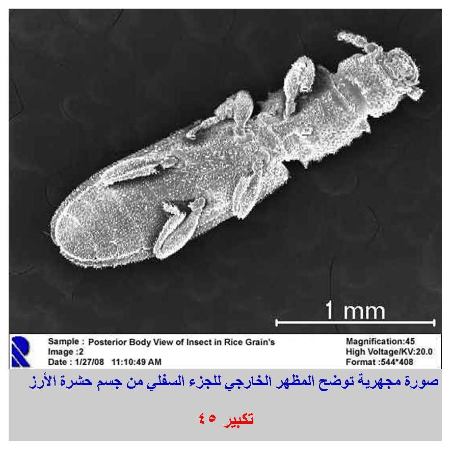صورة مجهرية توضح المظهر الخارجي للجزء السفلي من جسم حشرة الأرز |