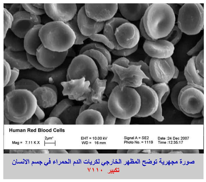 5 صورة مجهرية توضح المظهر الخارجي لكريات الدم الحمراء في جسم الانسان تكبير 7110