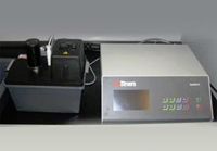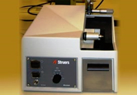 It is most important that specimens are firmly attached during ultrasonic cutting. This is best done by using a low melting point wax polymer to form a strong, thin, hard adhesive band. The specimen mounting hotplate is thermostatically controlled at the precise mounting temperature of 130°C. The hotplate also contains recesses to hold the specimen mounts in place when bounding the discs.