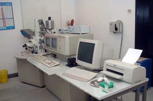 The E.M. Unit is having JEOL's JSM-6300 Scanning Electron Microscope, which can serve biologists for their purpose as a conventional SEM and material scientists as analytical SEM to study surface topography and elemental X-ray microanalysis. It is attached with LN2 Dewar 129 eV detector and energy dispersive spectroscope (EDS) manufactured by Rontec, Germany, and WDX-400, wavelength dispersive spectroscope (WDS) manufactured by Oxford, U.K. The unit is having well equipped specimen preparation laboratories to support above mentioned facilities for both biologists and material scientists.
