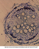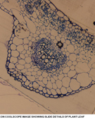 1 صورة مجهرية توضح التركيب الداخلي لقطاع عرضي في ورقة نباتية التقطت بالمجهر الضوئي الرقمي (coolscope) تكبير أعلى