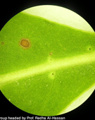 3 صورة مجهرية توضح المظهر السطحي لورقة نباتية التقطت بالمجهر المجسم الرقمي