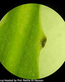 4 صورة مجهرية توضح المظهر السطحي لغدة على جانب ورقة نباتية في فصل الشتاء التقطت بالمجهر المجسم الرقمي